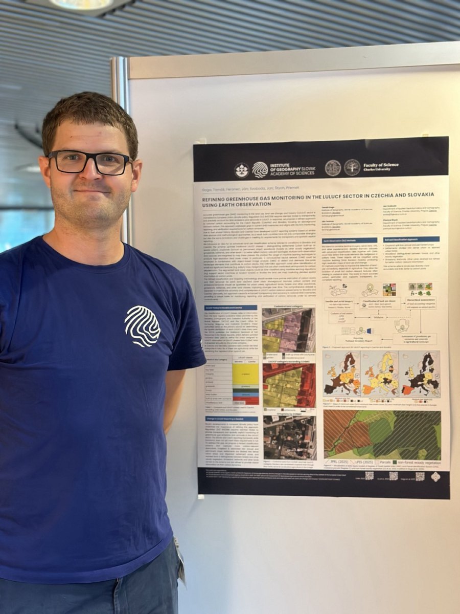 Tomáš Goga prezentoval poster „Refining Greenhouse Gas Monitoring in the LULUCF Sector in Czechia and Slovakia Using Earth Observation“, ktorý ukazuje, ako je možné: