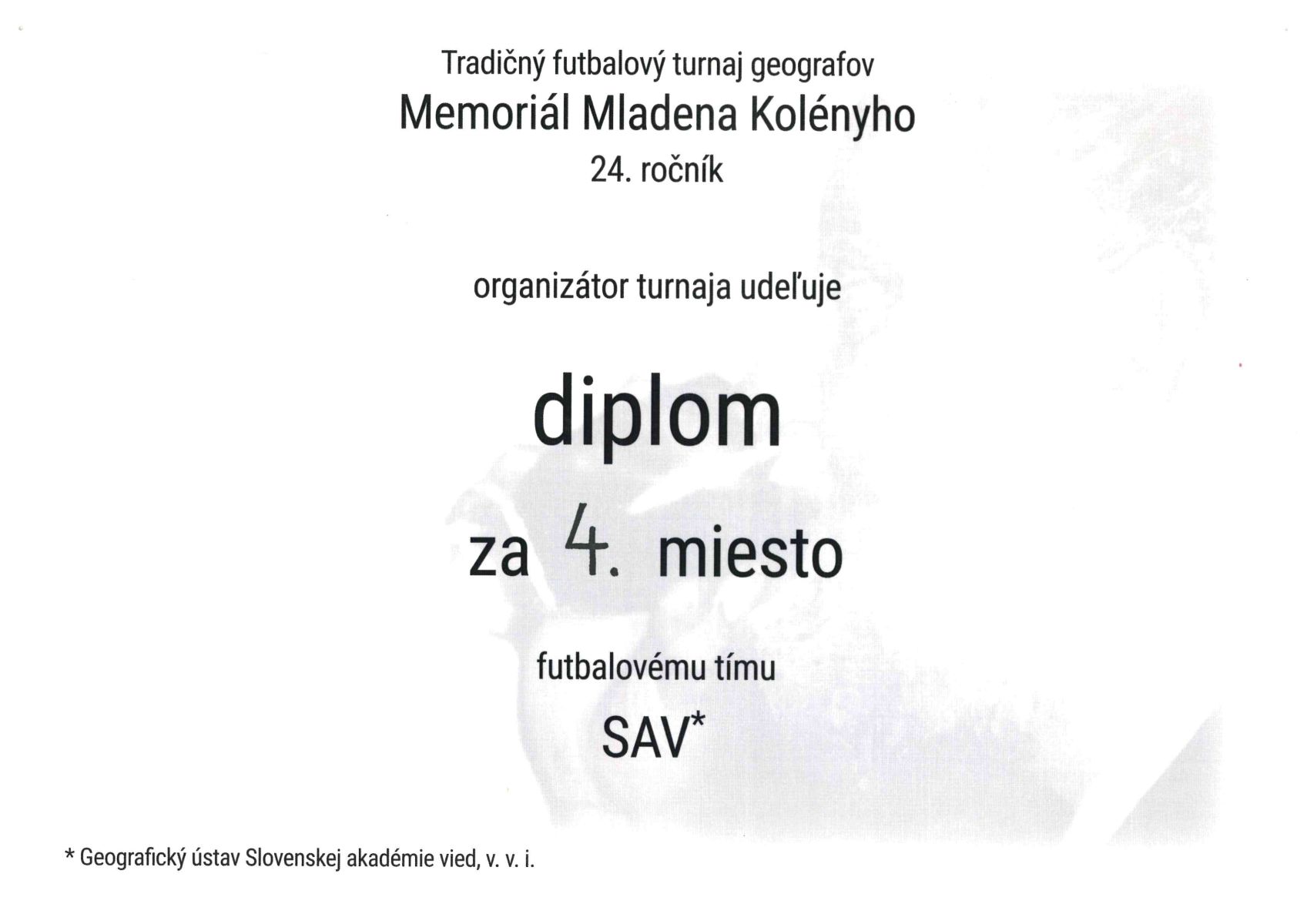 V zvyčajnom predvianočnom termíne sa 6.12.2024 odohral už 24. ročník tradičného futbalového turnaja geografov – Memoriál Mladena Kolényho 2024. Rovnako ako rok predtým sa zúčastnilo šesť tímov, po tri zo Slovenska a Česka.