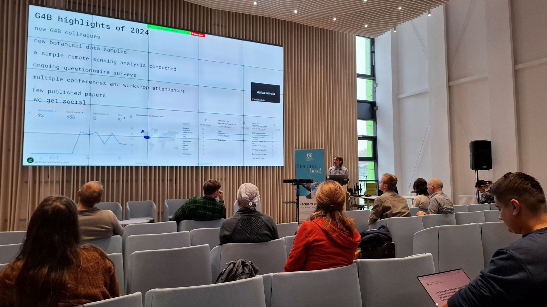 V dňoch 15. až 17. októbra 2024 sa v meste Timisoara (Temešvár) v Rumunsku, uskutočnilo projektové stretnutie ku projektu G4B: Grasslands for Biodiversity – Druhovo bohaté trávne porasty v Alpách a Karpatoch, na ktorom sa zúčastnilo 21 odborníkov zo 6 európskych krajín. Cieľom tohto stretnutia bolo prehodnotiť aktuálny stav projektu a naplánovať ďalšie kroky v rámci spolupráce v pracovných skupinách.
